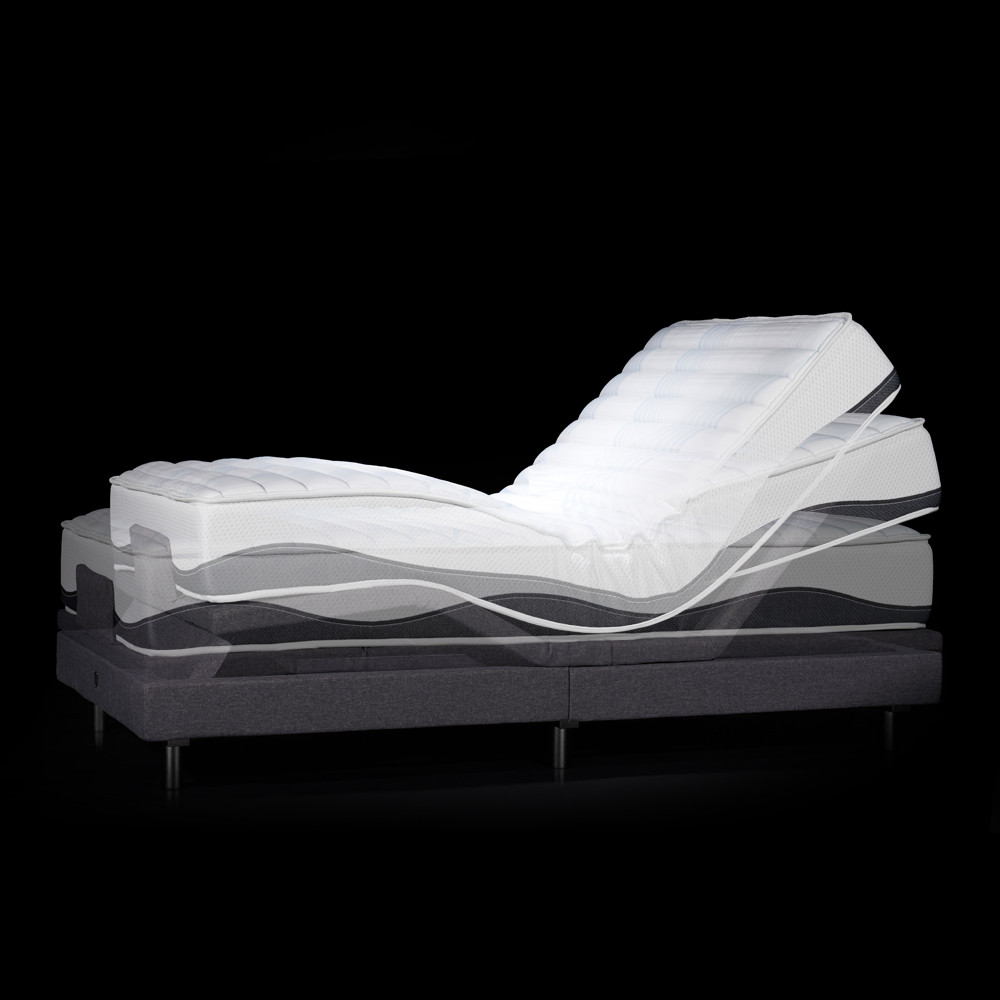 ◎專利可折式LIBAR SPRING力霸彈簧系統◎SLEEP BEAUTY睡美人膠原蛋白科技纖維墊層◎智慧恆溫海藻抗菌纖維舒適眠層◎四段式特殊切割環保科技膠棉◎床墊上升下降,幾乎安靜無聲,符合國家規定的城市市內聲環境0類標準,馬達3年保固。